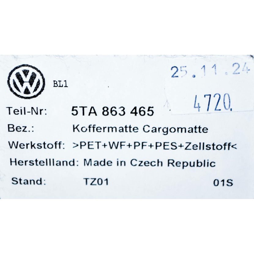 Parametry produktu  koberec/podlaha do kufru VW Touran 5TA (7 míst) 5TA863465