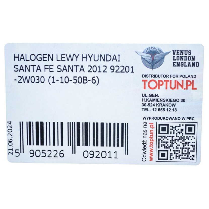 Parametry produktu mlhové světlo přední levé HYUNDAI Santa Fe 2012 bez LED