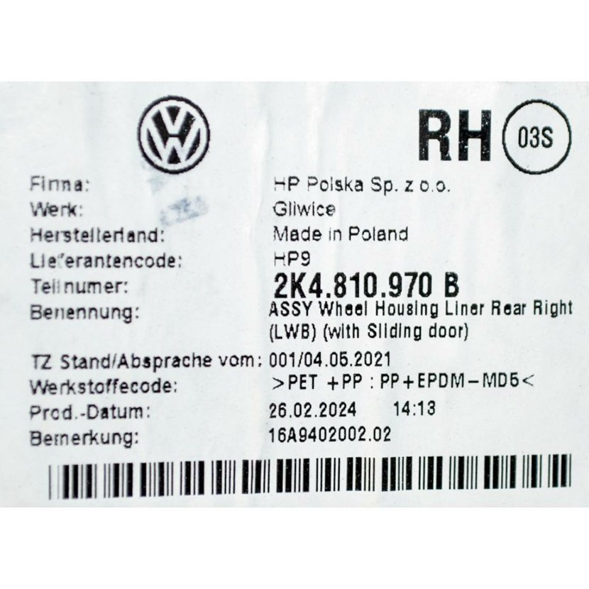 Parametry produktu  nadkolí zadní pravé FORD Grand Tourneo Connect 2KF 2K4810970B