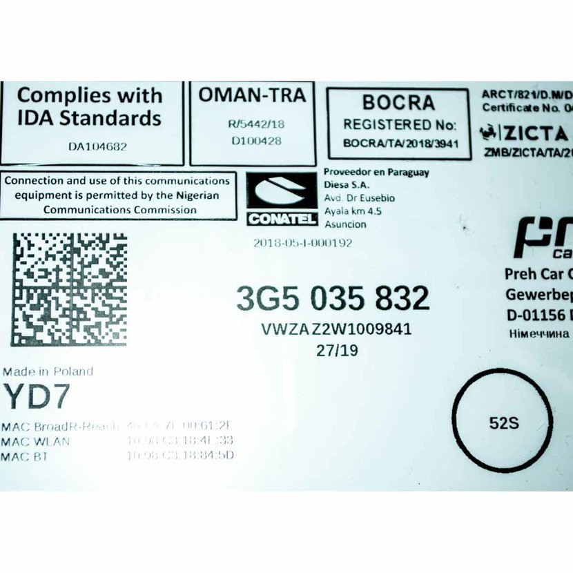 Parametry produktu  rádio (řídící jednotka a display) VW Passat B8 3G0 lift 5G6919605 3G5035832