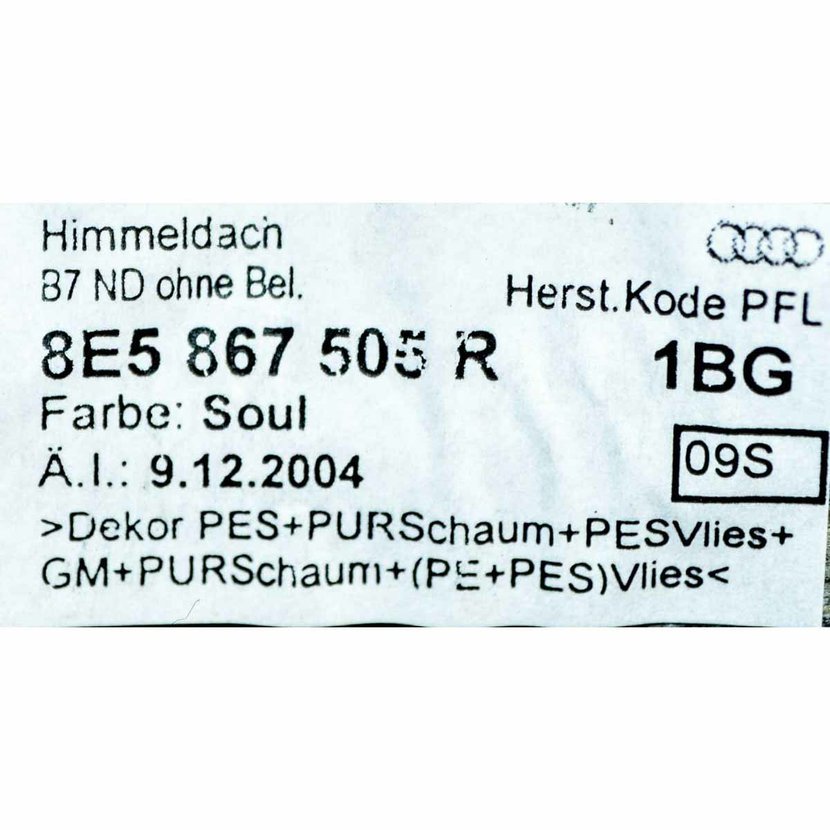 Parametry produktu  stropnice AUDI A4 RS4 8E0 sedan 2001-08 8E5867505R 8E5867505S 1BG