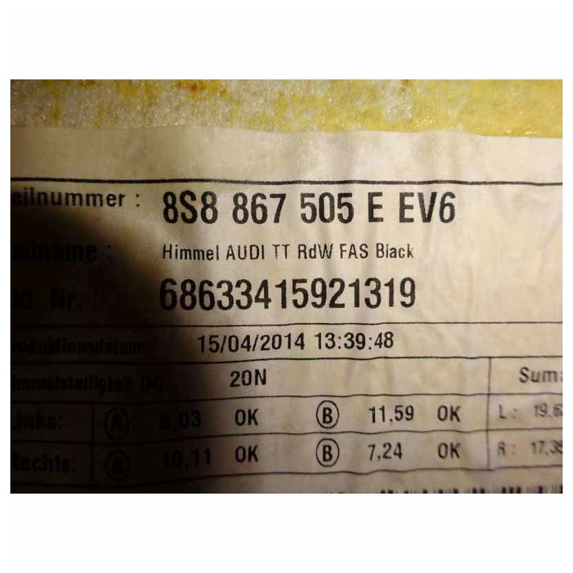 Parametry produktu  stropnice AUDI TT 8S0 Coupé 8S8867505E EV6