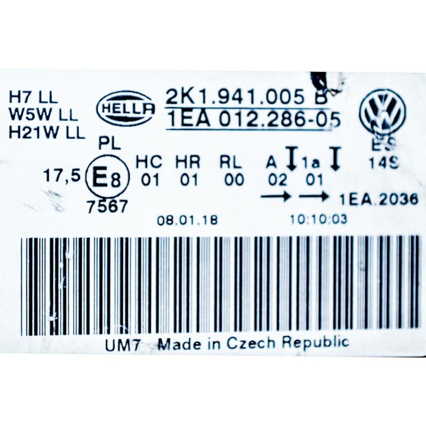 Parametry produktu  světlomet přední levý - halogenový VW Caddy IV 2K5 lift 2K1941005B - poškozený