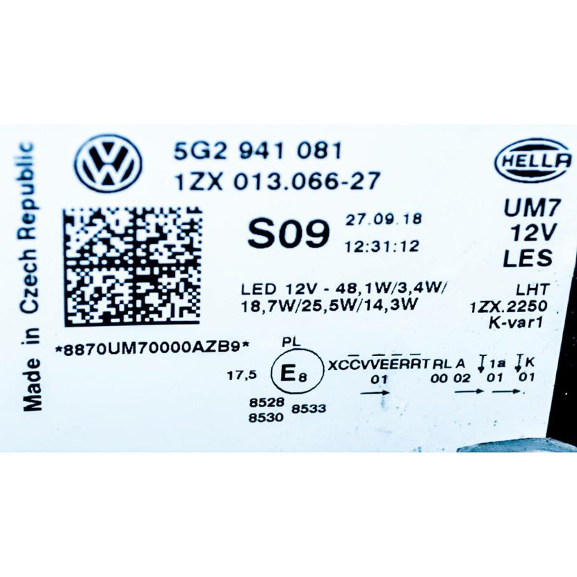 Parametry produktu  světlomet přední levý - kompletní full LED VW Golf VII 5G0 lift 5G2941081 5G2941113 -a.m.