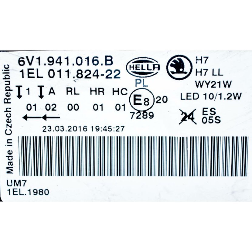 Parametry produktu  světlomet přední pravý - halogenový s čočkou LED ŠKODA Fabia III 6V0 6V1941016B - poškr.