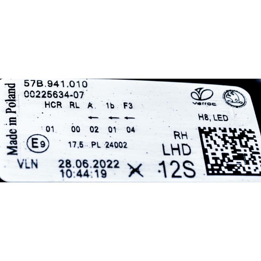 Parametry produktu  světlomet přední pravý - LED ŠKODA Karoq 57A lift 57B941010 - lehce poškozený