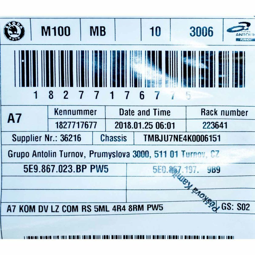 Parametry produktu  tapecírunk dveří levý zadní - LED ŠKODA Octavia III 5E0 RS lift combi 5E9867023BP PW5