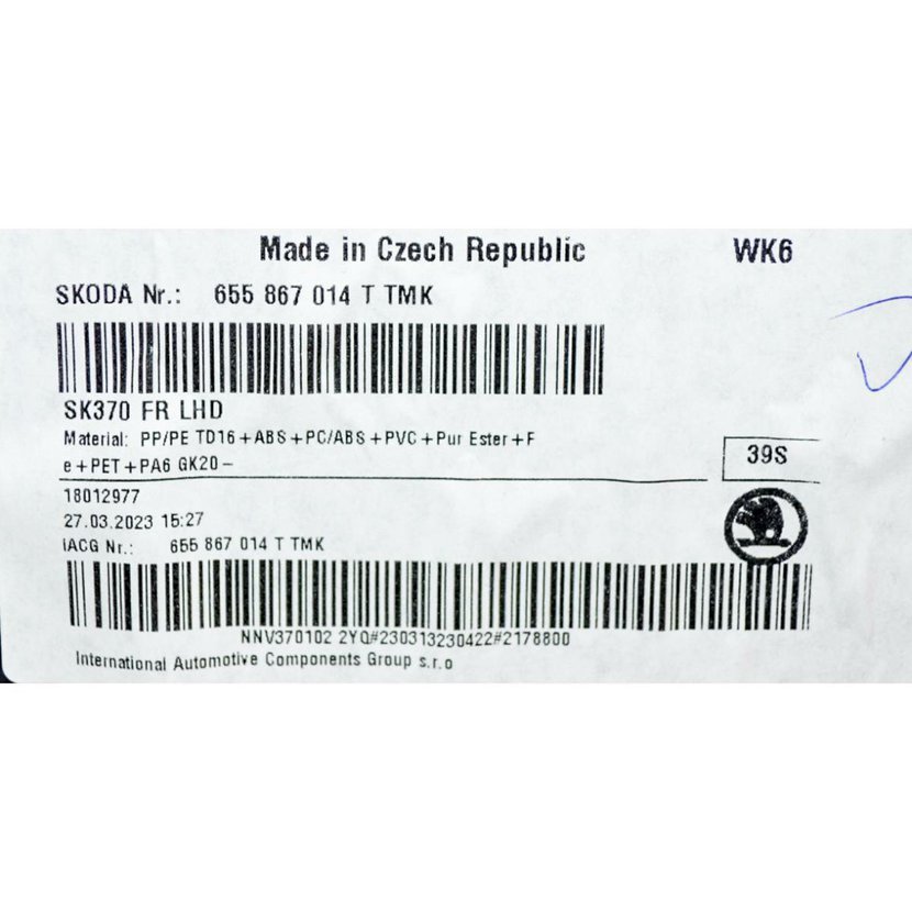 Parametry produktu  tapecírunk dveří přední pravý ŠKODA Kamiq 658 655867014T TMK