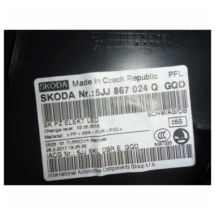 Parametry produktu  tapecírunk dveří zadní pravý ŠKODA Rapid 5JA lift Spaceback 5JJ867024Q GQD